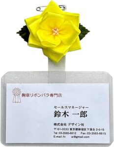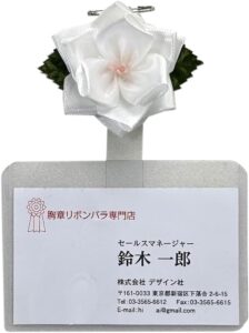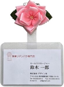 ネームプレート<名刺用名札>付き胸章リボン(豆バラ)